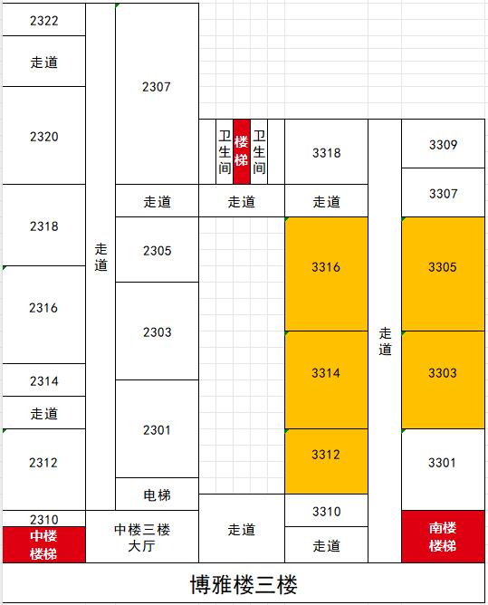 博雅楼教室号共四位,第一位数字为3表示3号楼,第一位数字为2表示2号楼,第二位表示楼层,三四两位表示具体房号。比如3303表示3号楼3楼的03房间,2103表示2号楼1楼的03房间,根据此规则可以较快找到自己的考场。