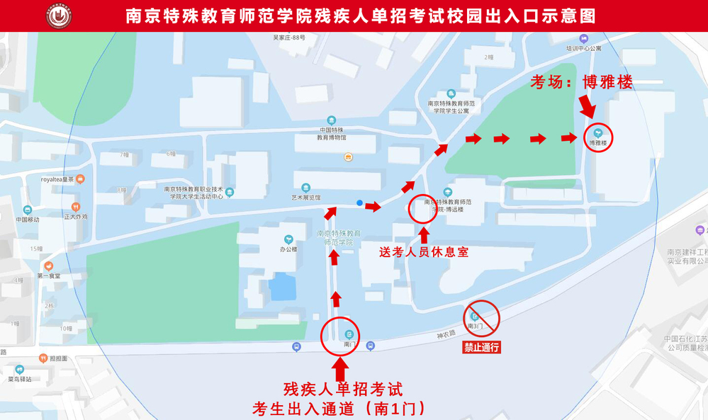 2.考试地点:南京市栖霞区神农路1号,南京特殊教育师范学院(栖霞校区)博雅楼